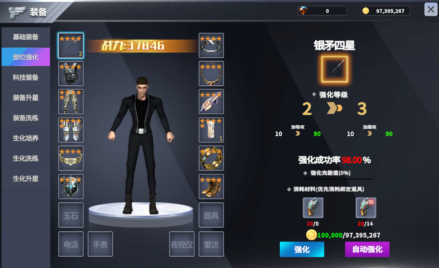 - 2:强化需要消耗强化石和金币。