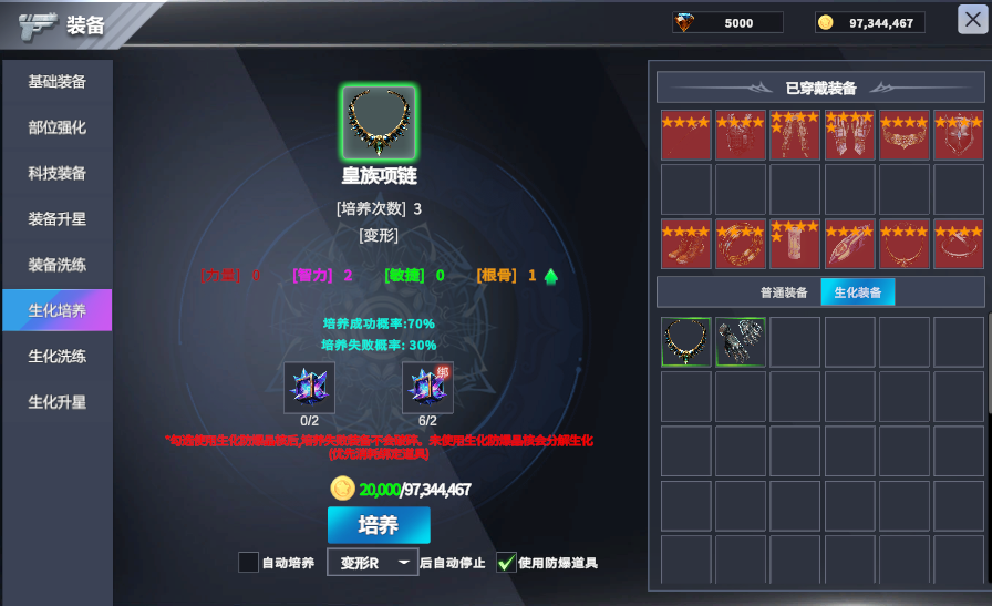 - 小提示:生化变形值带来的收益远大于培养次数。